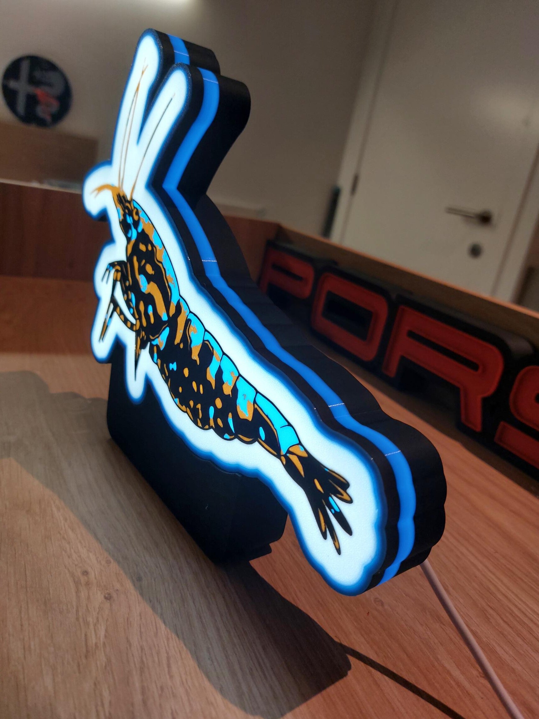 Volledig 3D geprint en verlicht, met subtiele blauwe/beige gloed die de kleuren van de BOA garnaal perfect laten uitkomen!